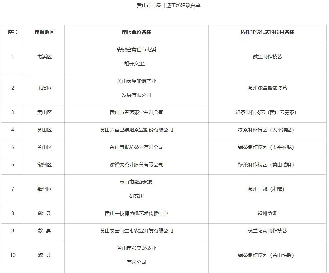 市級(jí)非遺工坊建議名單公示,休寧3家入榜!